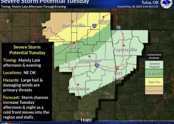 According to the National Weather Service (NWS) out of Tulsa, there is severe weather potential following a beautiful Memorial Day weekend.
