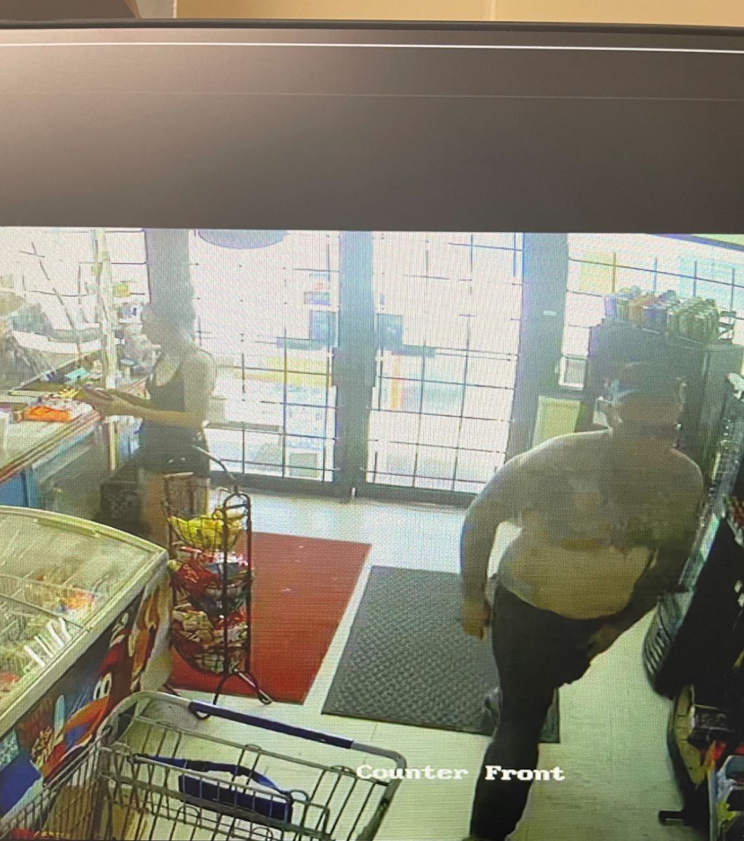 A male and female are suspects in a burglary that occurred around Shell Creek Rd. and N. 129th W. Ave. The male is caucasian, heavy-set and has several tattoos on his chest and right arm. The female is a thin caucasian and was wearing a dark-colored tank top at the time of the burglary. The two appeared to be driving a late 1990's, early 2000's Chevy pickup that is tan in color.