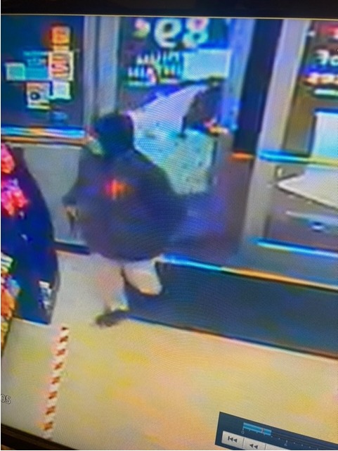 The suspect entered the Good Stop and pointed a pistol at the store clerk. The suspect wore a dark colored baggie jacket, a gray mask, and a red beanie on his head. The suspect was described as a white male.