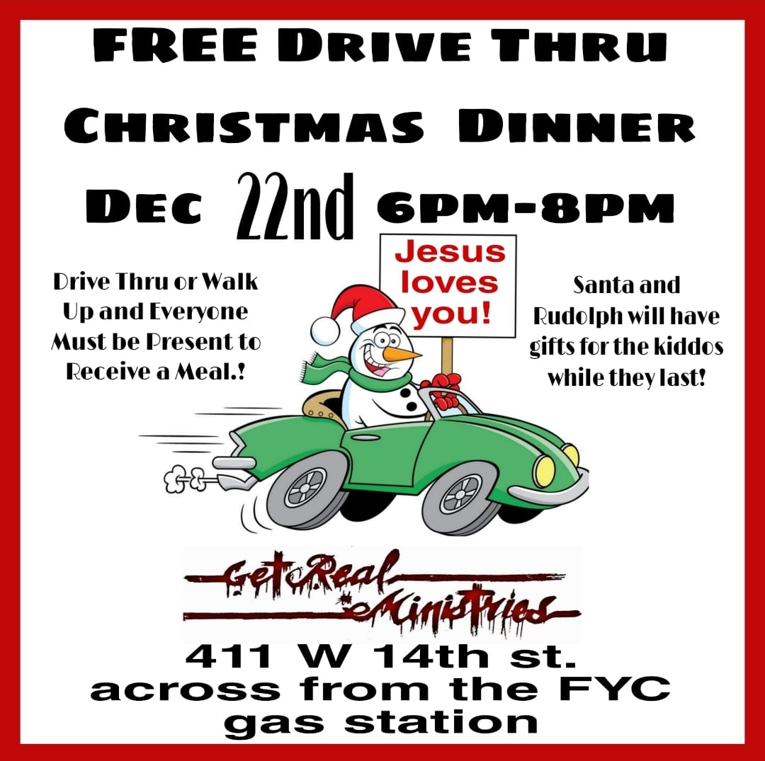 Get Real Ministries will then focus on their Christmas Drive Thru Dinner on Friday, December 22, at the church from 6-8pm.