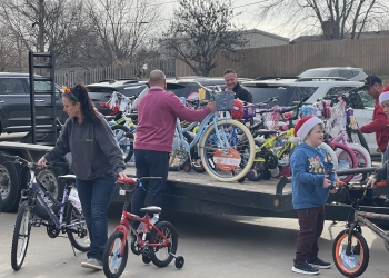 Patriot Chevrolet and Patriot GMC-Hyundai in Bartlesville teamed up Wednesday to donate 60 bicycles to the Department of Human Services in Washington County. The bicycles will be distributed to foster children across the area.