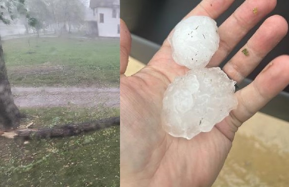 Earlier on Monday, a severe thunderstorm ripped through Caney, Kansas, bringing ping pong, golf ball and even baseball-sized hail and high winds.