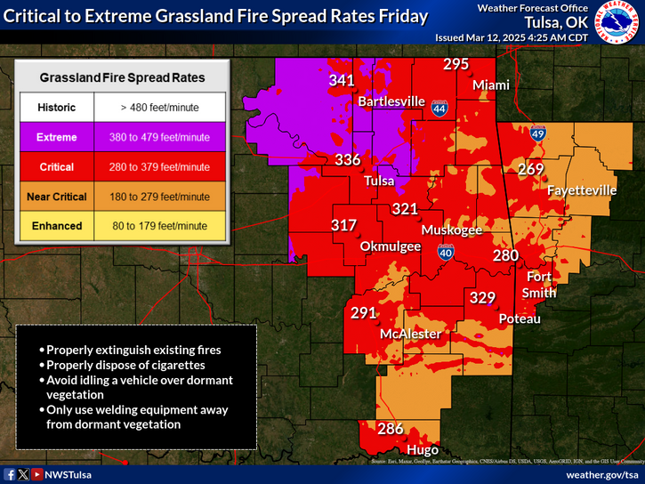 Warm temperatures, low humidity and extreme wind gusts are expected the remainder of this week across northeast Oklahoma and southeast Kansas, bringing the threat of wildfires with it.
