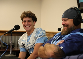 Bartlesville head football coach Harry Wright and Bruin tight end and linebacker Boden Roberts were the guests on Wednesday night’s Bruin Football Coaches Show, as we talk Bartlesville High football every Wednesday night from Dink’s Pit BBQ.