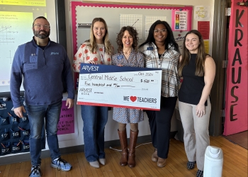 Arvest Bank gifted Callie Krause, a seventh grade teacher at Central Middle School, $500 during the bank’s “We Love Teachers” initiative. The initiative is designed to help with purchasing school supplies for classrooms.