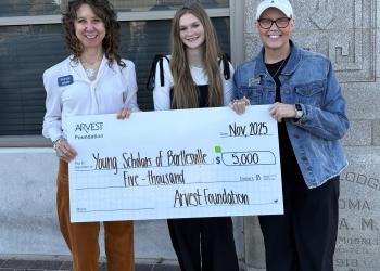 “We are proud to present this donation on behalf of the Arvest Foundation to help local students work toward college graduation,” Williams said. “The Young Scholars of Bartlesville program changes the lives of the students it supports.”