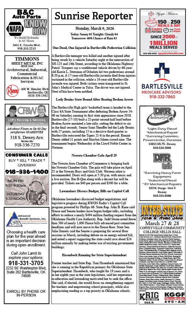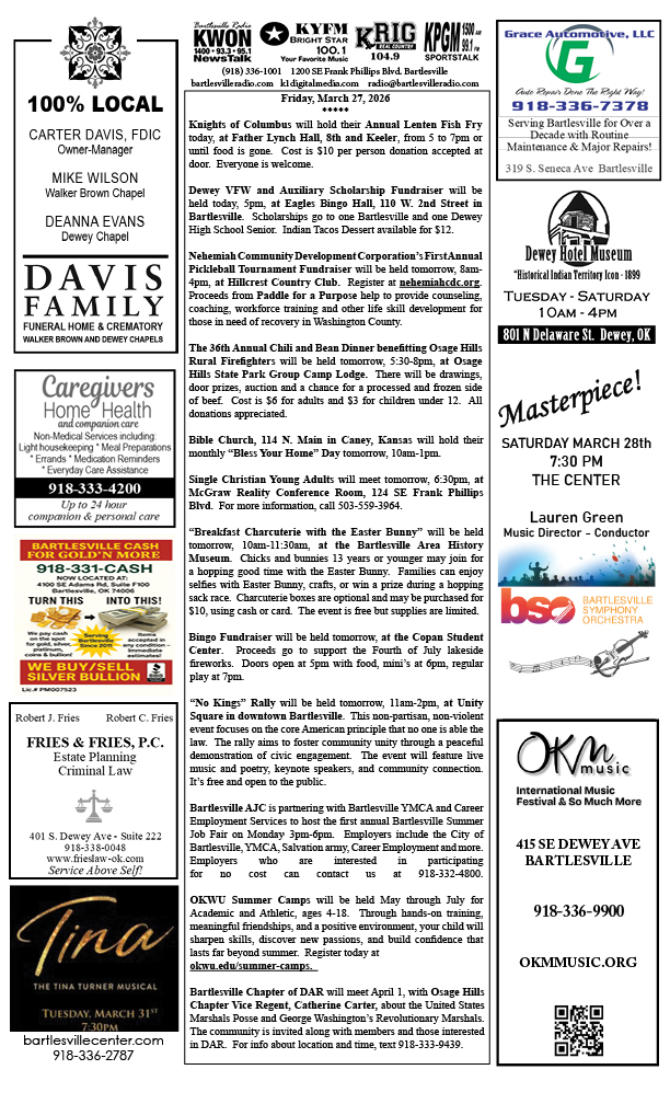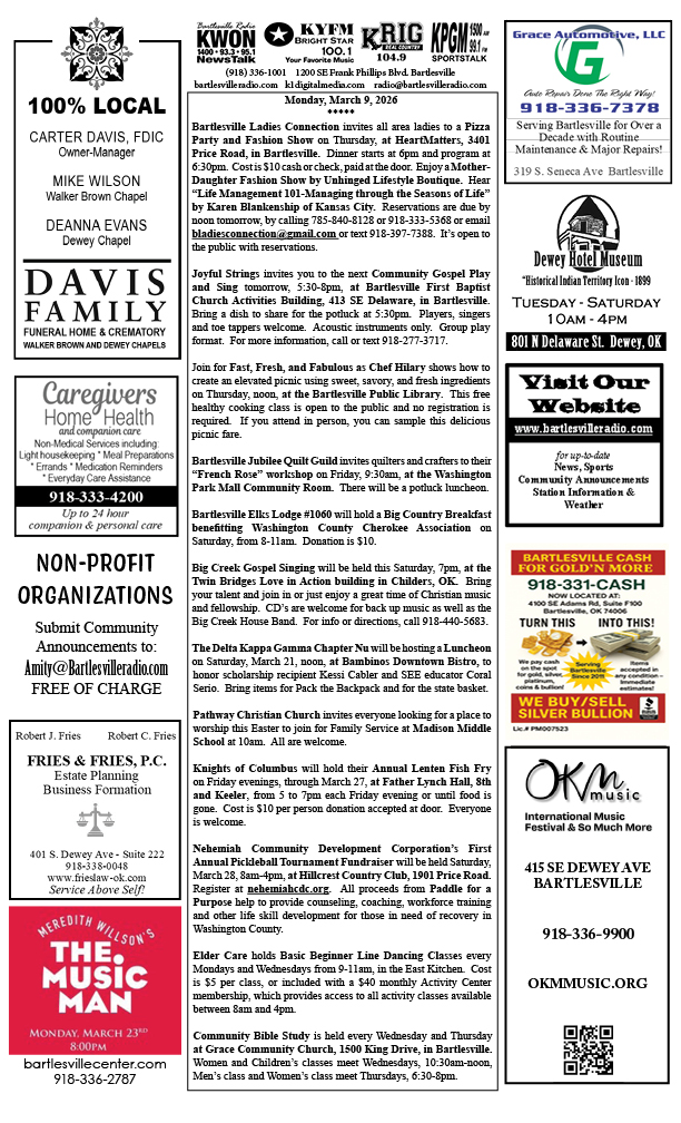 Bartlesville Radio: The area’s best source for news, weather and sports!