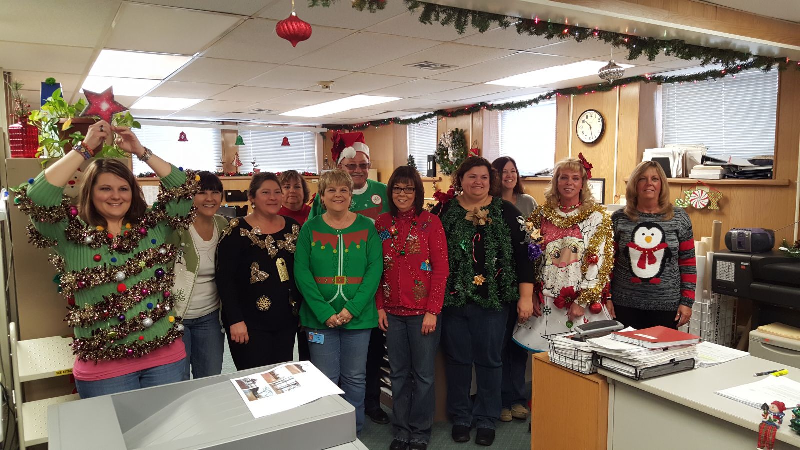 Monday morning, in Holiday fashion, the Osage County Assessors Office held an Ugly Sweater Contest. The entire Assessors office took place in the contest but several stood out from the rest.