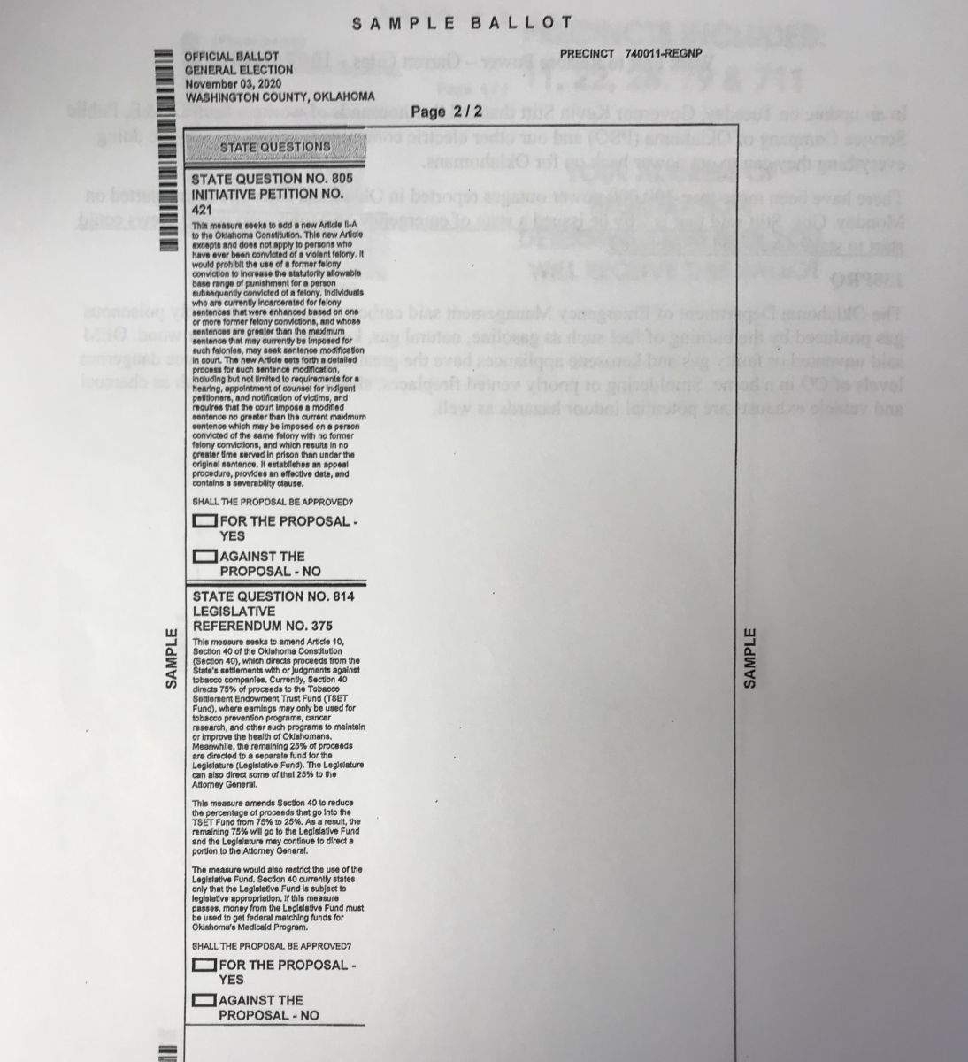 State Question 805 & SQ 814: