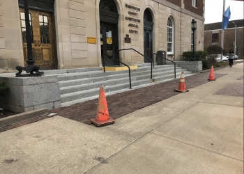 The Washington County Commissioners approved a $10,800 quote from E.E. Brown Concrete Construction, Inc. on Monday morning. Commissioner Mike Dunlap said they'll repair troughs in the area as well. He said the brick is flaking, which is created a tripping hazard in the area. Cones have been place in the area for that exact reason.