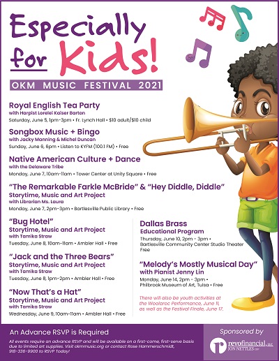 Advance reservations for the 2021 “Especially for Kids” series are required and are now available! For more information, contact OKM Children’s Programming Director: Rose Hammerschmidt, 918-336-9900.