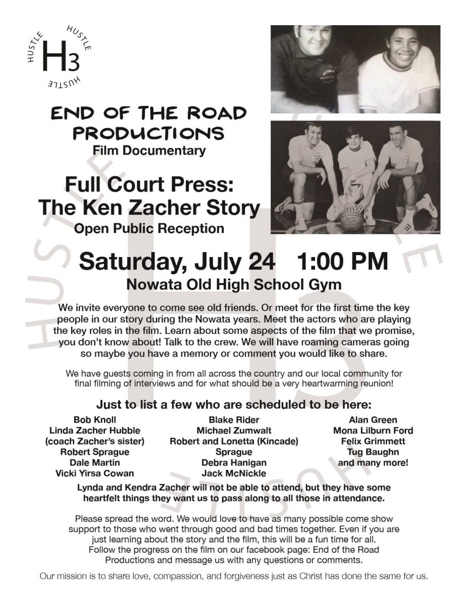 The open public reception for "Full Court Press: The Ken Zacher Story," will take place on Saturday, July 24, at 1:00 p.m. in the Old High School Gym in Nowata. Director Chuck Price and Producer Dane Waren appeared on Community Connection on Thursday to talk about the documentary and the reception. Price said Ken Zacher was a basketball coach who tried to instill good things in young people and bridge racial relations both on and off the court. He said Zacher had impeccable ethics, but he suffered from mental illness.