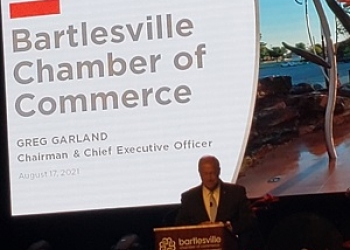 The Bartlesville Chamber of Commerce hosted a special forum on Tuesday featuring Greg Garland, Chairman and CEO of Phillips 66, at City Church in Bartlesville.