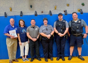 Pictured right: BPD Chief Tracy Roles, Kane Principal Tammie Krause, Sergeant Ward, School Resource Officer (SRO) Plummer, SRO Woods and Corporal SRO Meyer.