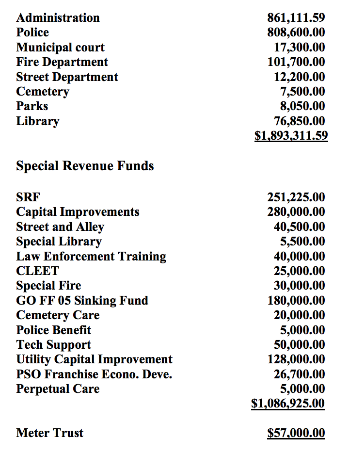 Pictured below is the budget breakdown for the City of Dewey and the Dewey Public Works Authority: