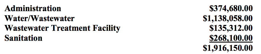 The Dewey Public Works Authority (DPWA) would be allocated $1,916,150, which will be split amongst administration, water and wastewater, the wastewater treatment facility, and sanitation.