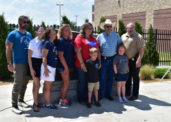 The non-profit Ten-Seven Retreat was in Bartlesville on Friday, July 1 to present a vacation to the Kyle Davis Family. Ten-Seven offers reprieve, relaxation and new adventures for families of fallen law enforcement as they write a new chapter in their family book. Through donations from local residents in Oklahoma, the Davis Family will be flown to Florida for a few days of fun and then experience five days on the open seas with fishing, swimming and other activities as part of a stay on a private island.