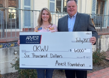 Oklahoma Wesleyan University recently received a $6,000 donation from the Arvest Foundation. These funds will help provide scholarship opportunities to area students, as OKWU President, Jim Dunn knows this money will help better the community:
