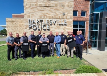 Scott Walton of the Rogers County Sheriff's office and founder of the non-profit, STANDFirst, was in Bartlesville this week to present ballistic shields to both the Bartlesville and Dewy school districts for use by the School Resource Officers (SRO). The shields offer an added safety measure as school re-opens.
