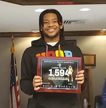 Bartlesville Bruin Jr. David Castillo was given a plaque at Monday night's Bartlesville Board of Education meeting. Castillo set the record for most career point scored in Bartlesville High School history-- and he has another year left to play for the Bruins!