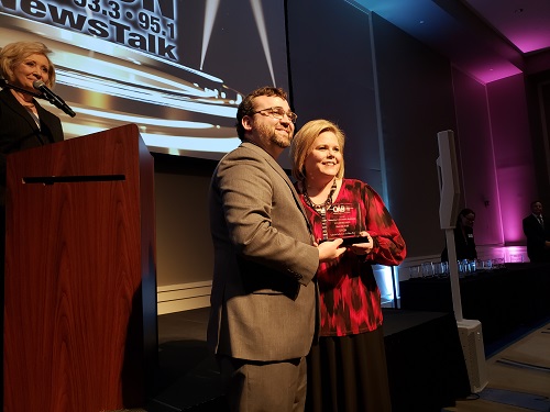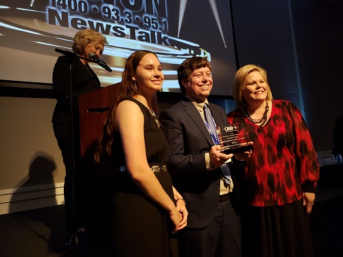 Kaleb Potter, General Manager of Bartlesville Radio, graciously accepted the trophy on behalf of the staff and management of the stations.