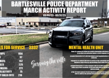 The Bartlesville Police Department issued their monthly report this week showing how many calls for service officers responded to in March.