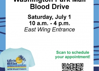 The Washington Park Mall is hosting a blood drive on Saturday, July 1, from 10 a.m. to 4 p.m. at the East Wing Entrance. The red blood cells donated is good for 42 days and could save a life.