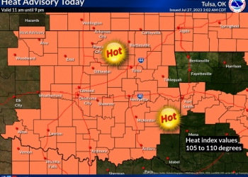 National Weather Service offices in both states issued the advisories for hot temperatures and high humidity, which will combine to create dangerous situations where heat illnesses are possible. The advisory for northeast Oklahoma says heat index values between 105 and 108 degrees are expected Thursday. The excessive heat warning for southeast Kansas says heat index values up to or exceeding110 degrees are possible.