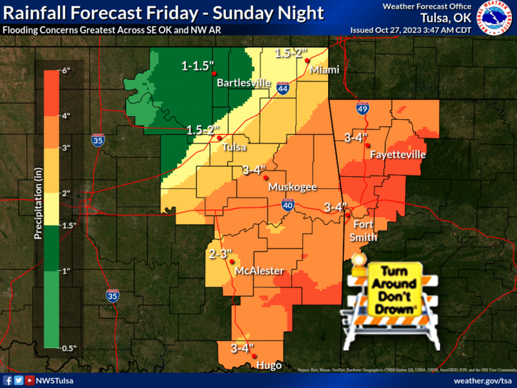 The National Weather Service says more rain is expected through the weekend, with the potential for another inch to an inch and a half of precipitation falling.