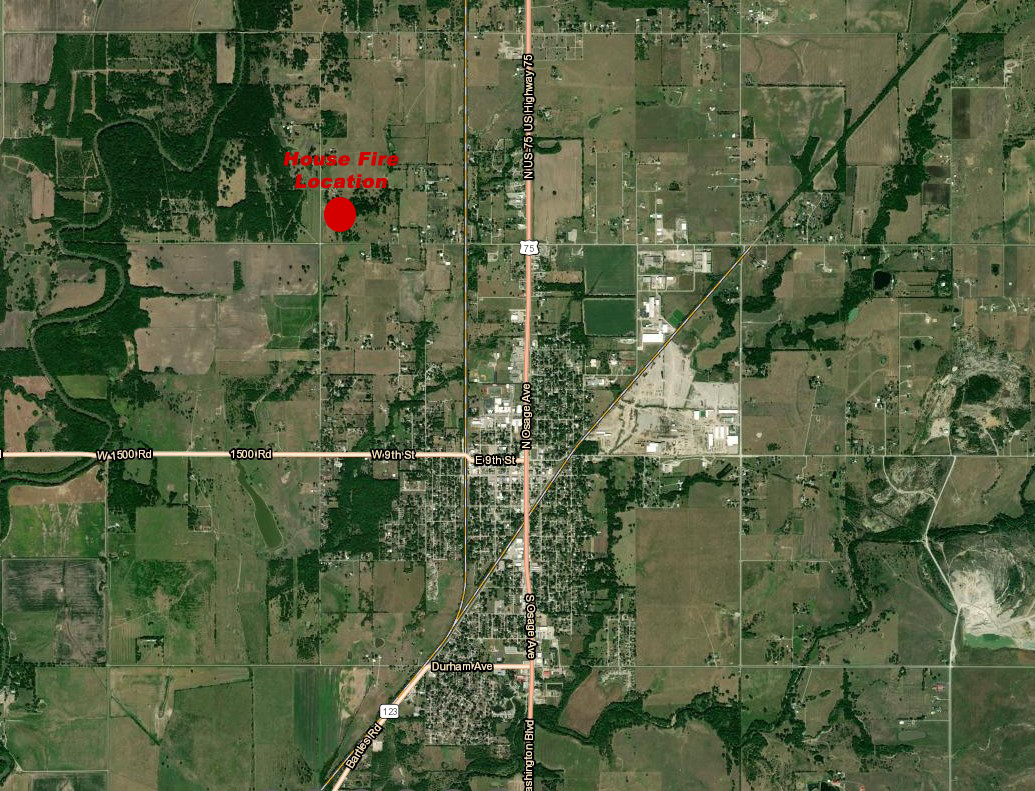 A house fire northwest of Dewey killed a man and his three dogs Wednesday morning. 61-year old Jimmy Harrington, along with his three dogs, were inside the home when the fire occurred.