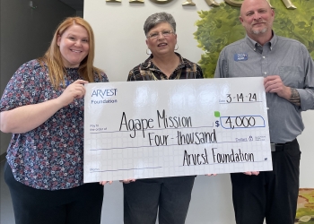 Agape Mission will receive support in funding thanks to a $4,000 donation from the Arvest Foundation.