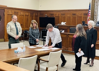 Four Washington County elected officials were administered oaths of office by District Judge Linda Thomas Thursday morning at the courthouse to begin their new four-year terms.