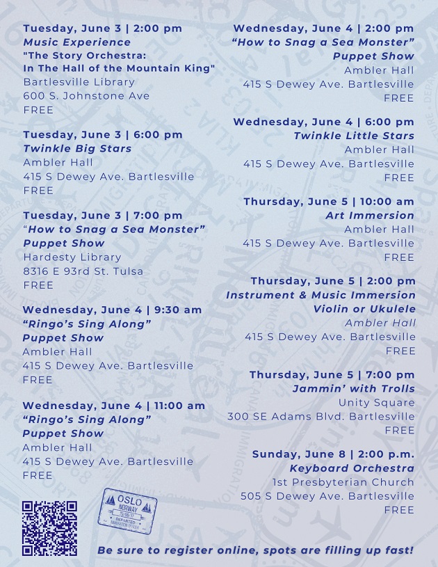 Mihm said that this year,the attendees will be embarking on a “Trip to Norway!” with exciting piano performances, a tea party, art & music immersions, lots of story times, a trolls DJ dance party, and more musical fun!