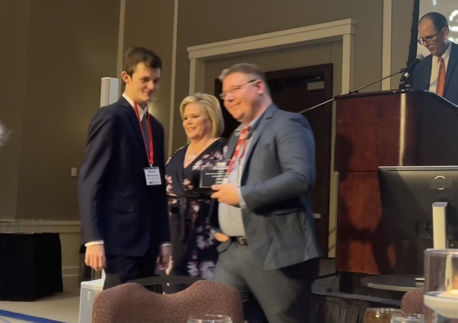 Evan Fahrbach celebrates his award for best play-by-play Thursday night