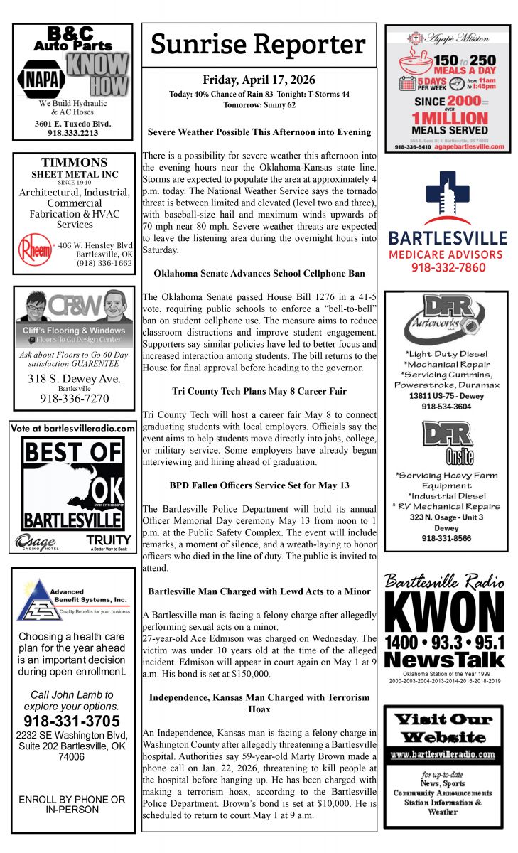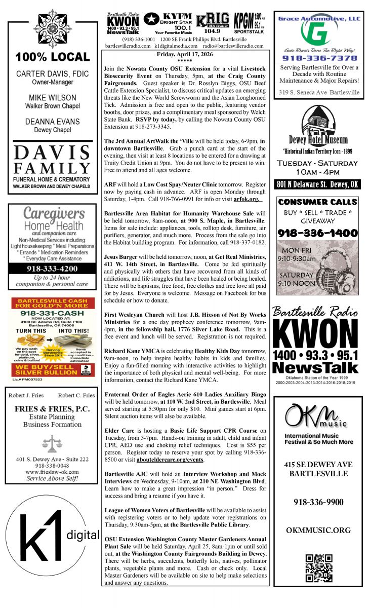 Bartlesville Radio: The area’s best source for news, weather and sports!